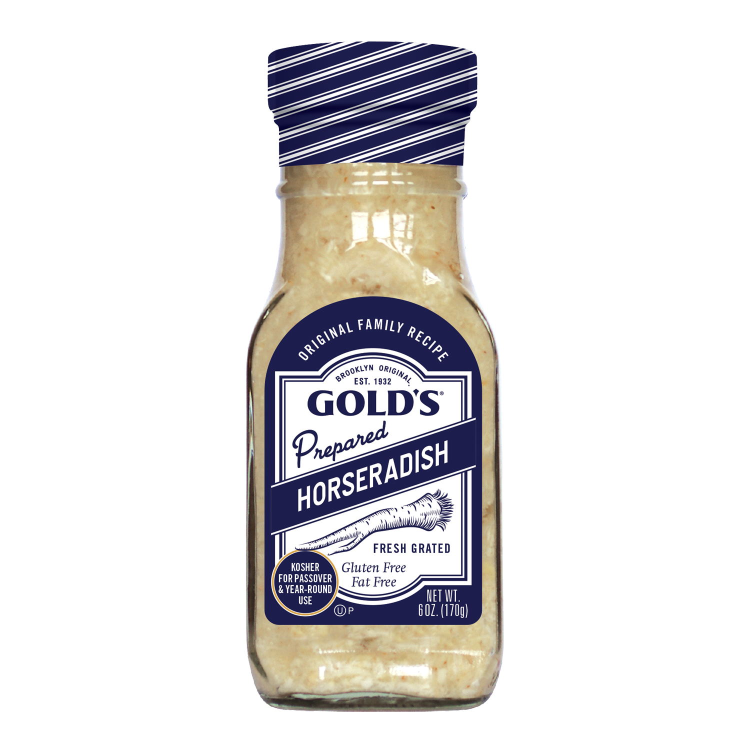 The original. The beloved. Gold’s Prepared Horseradish. Made from the freshest horseradish roots in our spicy old-world style, Gold’s famous Prepared Horseradish packs a punch. The only way it could be any fresher or more pungent is if you grated it yourself! Kosher for Passover as certified by The Orthodox Union.