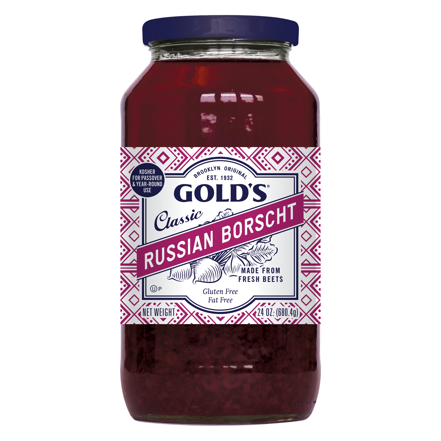 Gold’s Russian Style Borscht soup is vibrant in both color and flavor, made from fresh beetroots and pungent garlic in traditional Russian style. This soup is the perfect salty-sweet accompaniment to beef, pork, chicken, or a hearty loaf of bread! All of our borscht varieties are Kosher for Passover as certified by The Orthodox Union.